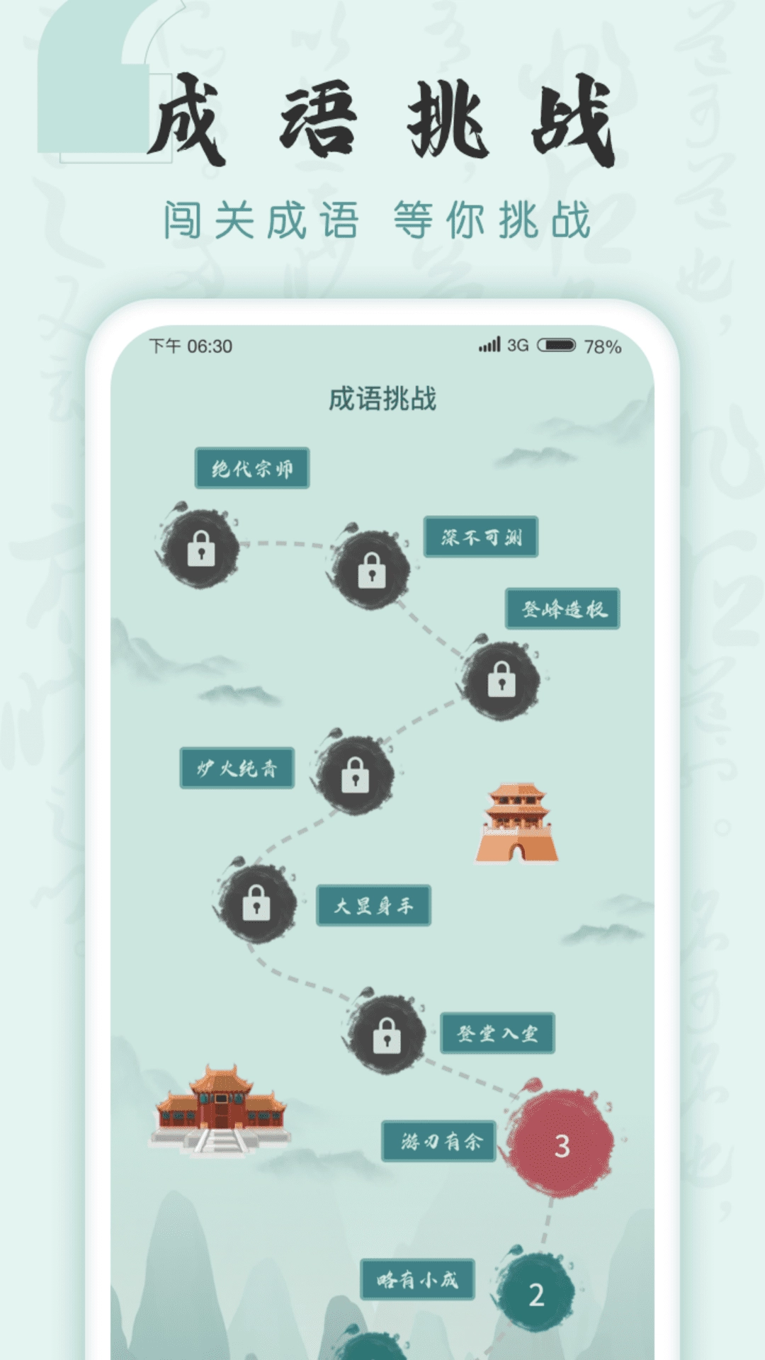 成语挑战者是一款以成语为主题的闯关挑战软件,该软件提供一系列成语相关的闯关挑战,用户需要根据提示或题目中给出的情境或描述,猜测正确的成语并填入相应的答案框中。有多个关卡,每个关卡都有不同的题目和难度级别。用户需要逐渐解锁和完成每个关卡,挑战更高级别的成语问题。