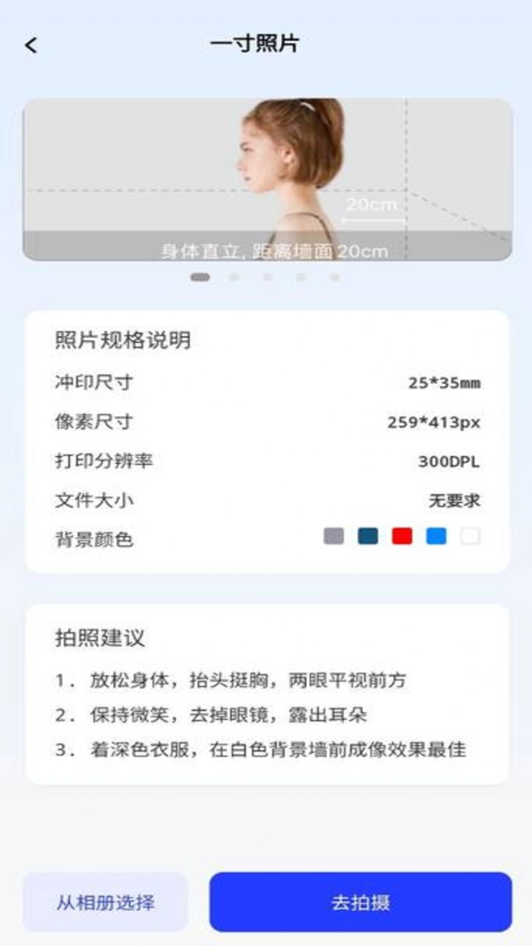 3.多种尺寸和背景服装选择,满足不同国家和地区的要求,确保照片符合法规。
