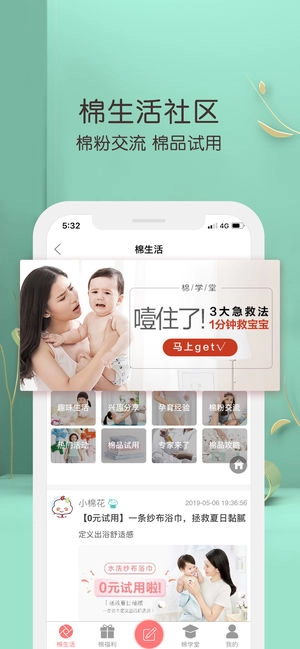 3、全棉社区,和千万用户畅快分享,母婴知识、女性话题、趣味互动。