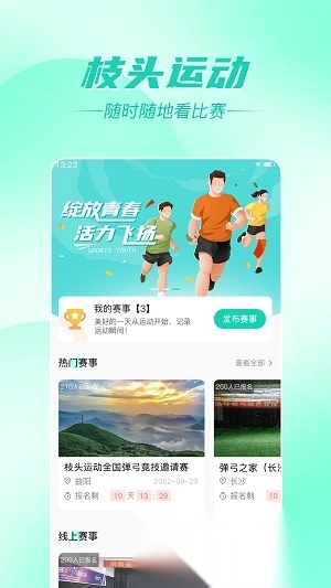 1、提供各种精彩赛事,在应用中查看赛事信息、报名参加挑战自己;