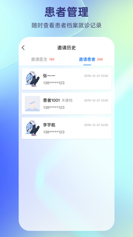 2、每一位患者都有一个详细的就诊档案,能够查看以往的就诊记录和健康数据,存储在云端,用户可以随时查看和管理自己的健康信息。