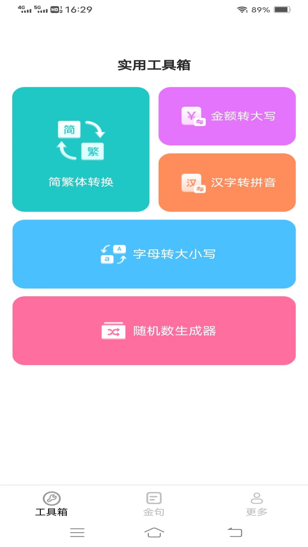 黄金工具宝是一款手机助手,软件提供各种单位之间的转换,如长度、重量、温度等,帮助用户快速进行单位换算。提供基本的数学运算、科学计算和金融计算等功能,方便用户进行各种计算。允许用户浏览和管理设备中的文件和文件夹,包括复制、移动、删除、重命名等操作。