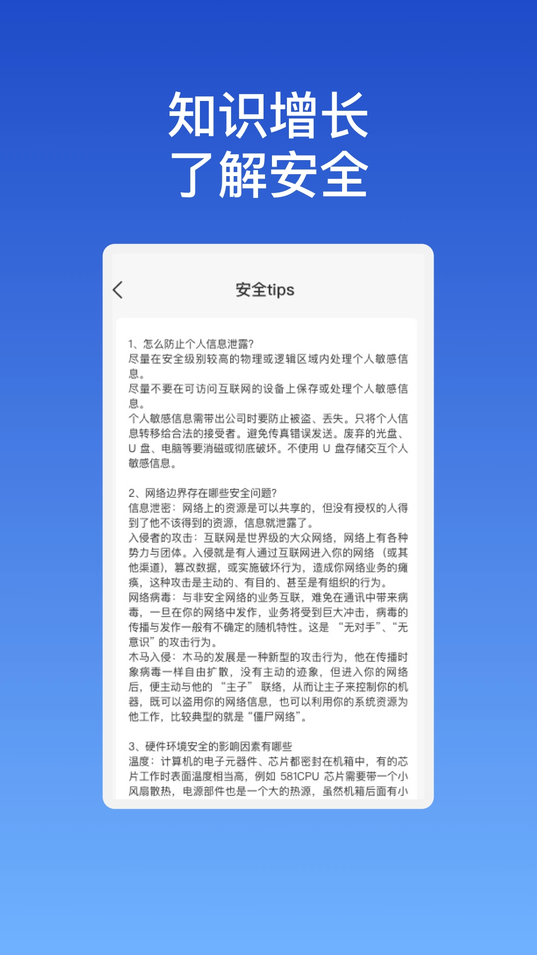 艺云优化大师软件还可以帮助用户检查wifi是否安全,如果有恶意病毒入侵手机,软件还第一时间防御,非常的安全。