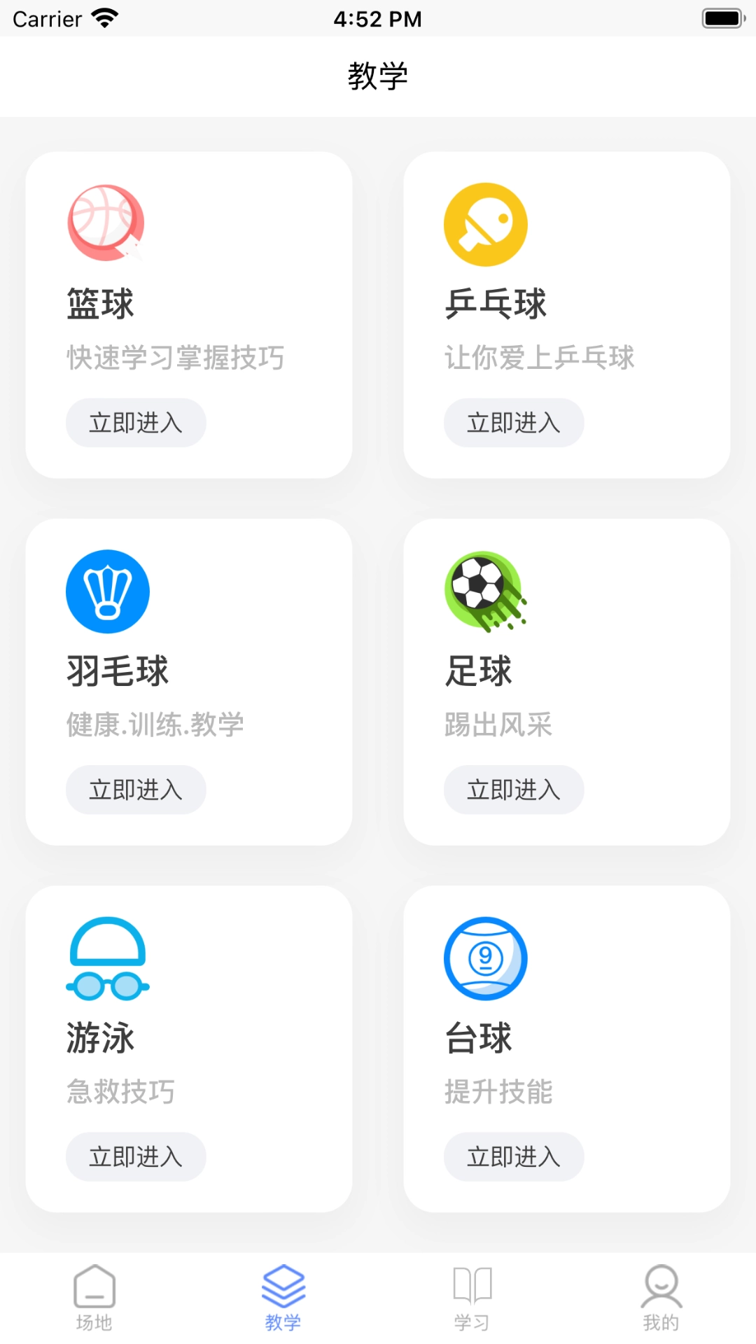 1、该应用涵盖了多个体育项目,包括足球、篮球、羽毛球、网球等,孩子们可以在一款app内完成所有体育培训的预约和学习。