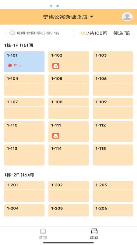 1、可以轻松的进行公寓房态查询,了解占用情况。