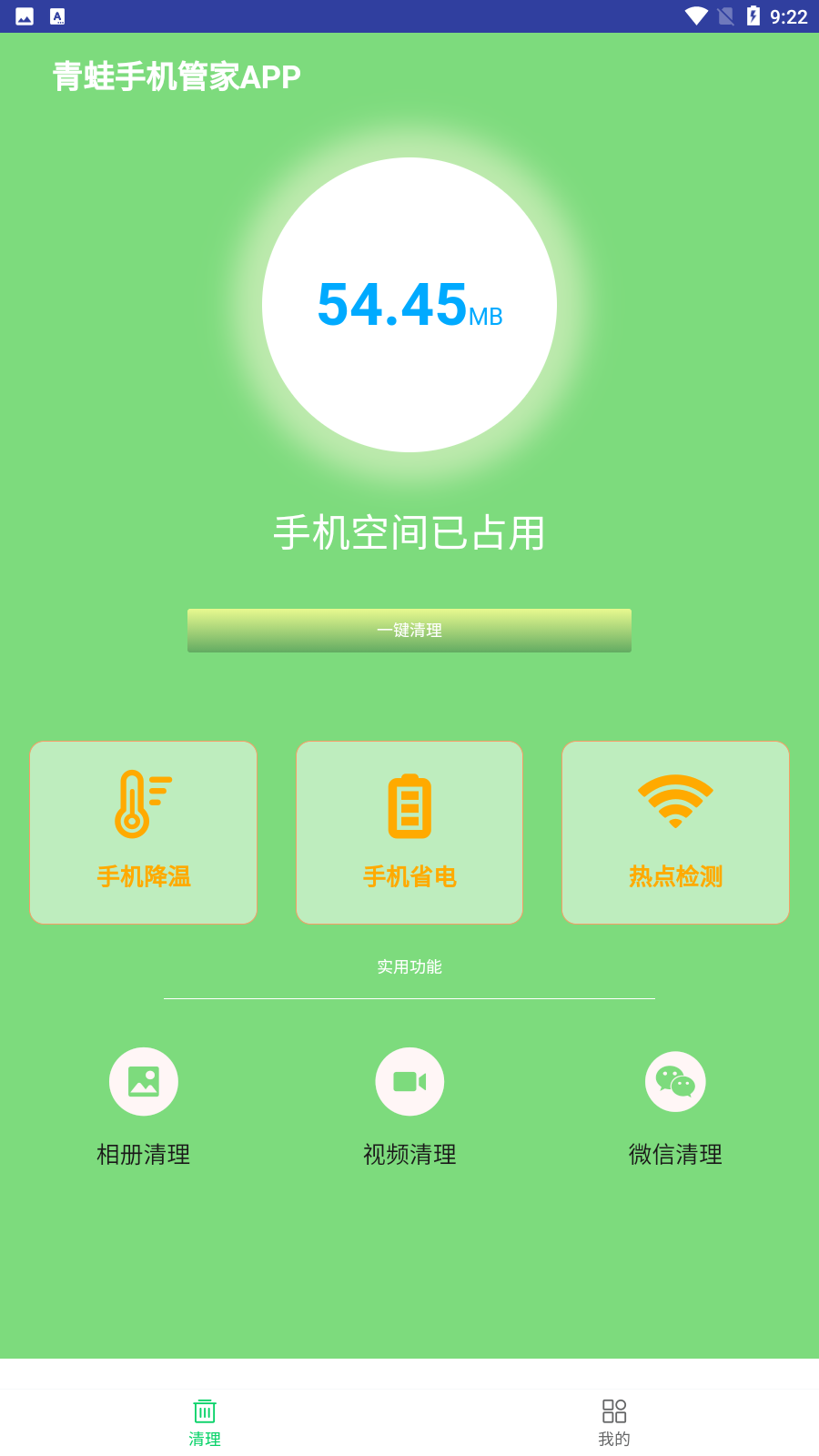 1.青蛙手机管家是一款非常实用的手机管理工具应用。