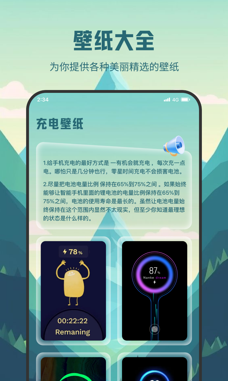 帮帮充电宝是一款专业的电池充电管理手机助手,它提供了多种实用功能和工具,帮助用户管理和延长手机电池寿命。该应用可以记录每次充电的时间、持续时间、电量等信息,帮助用户了解充电情况并优化充电策略。支持设置充电提醒,当电量低于设定值时,会自动提醒用户充电。