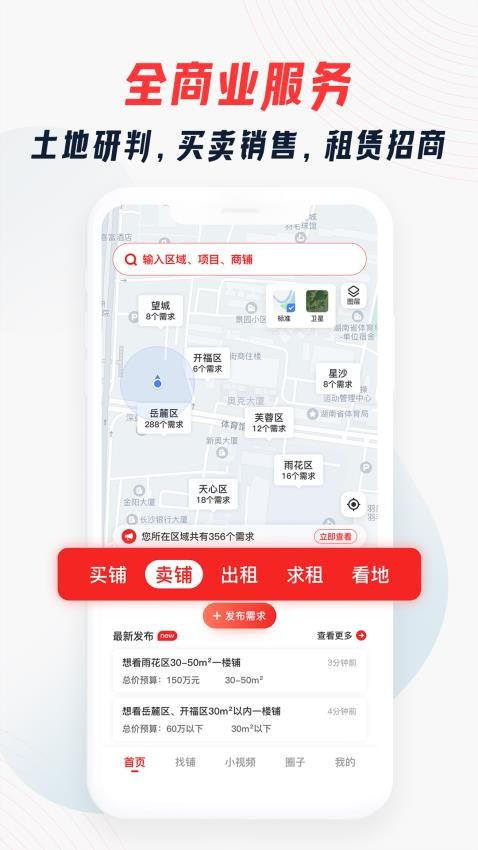 1、找铺进入找铺界面中就可以对各种商铺信息进行寻找