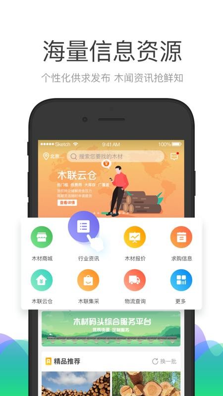 1.在首页可以看到非常丰富的功能,有提供木材商城、行业资讯等功能’