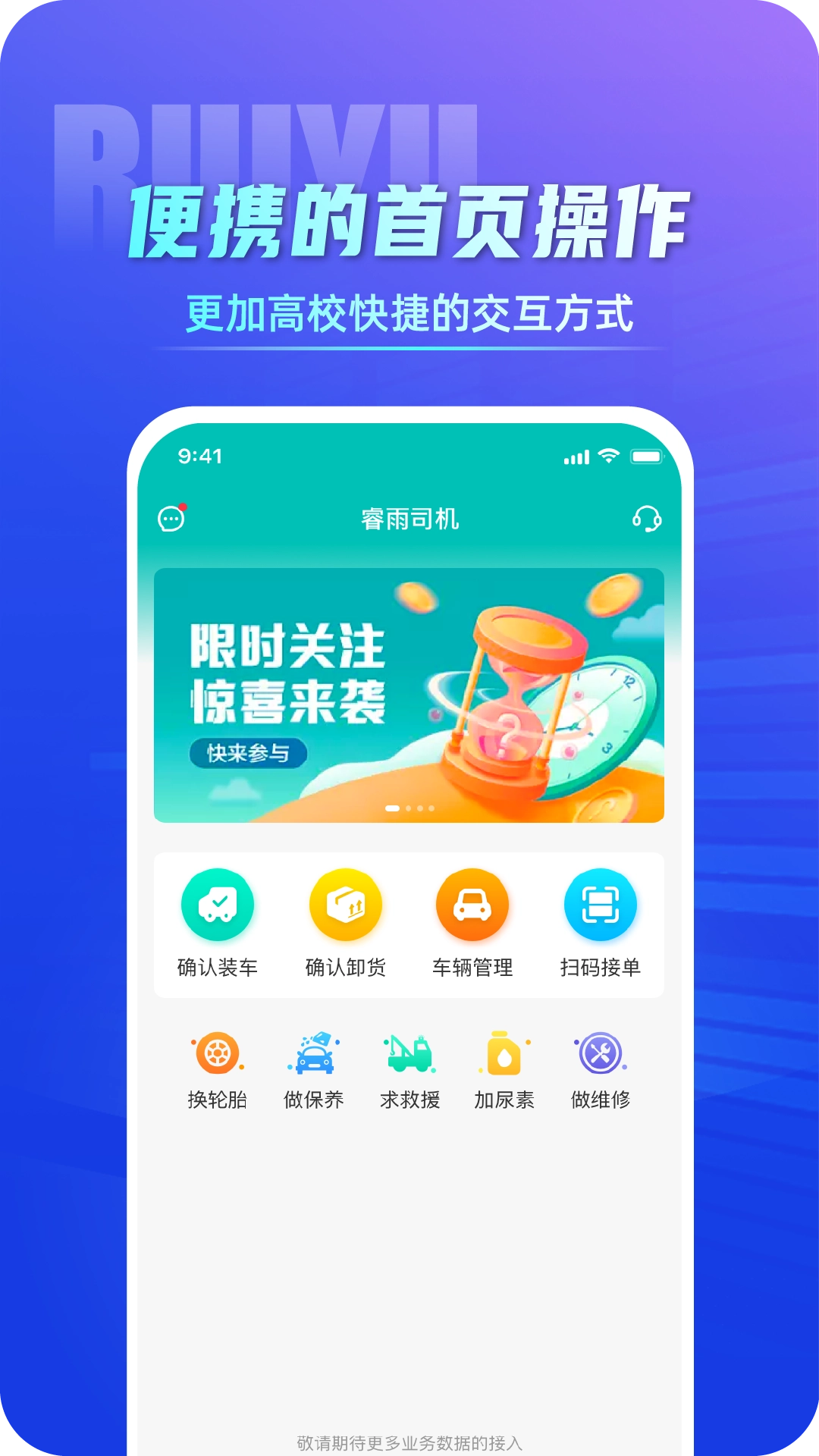 2.在这个快节奏的时代,时间就是金钱,效率就是生命,而睿雨司机恰恰能够帮助司机朋友们最大化地提升工作效率,实现更为优质的出行服务。
