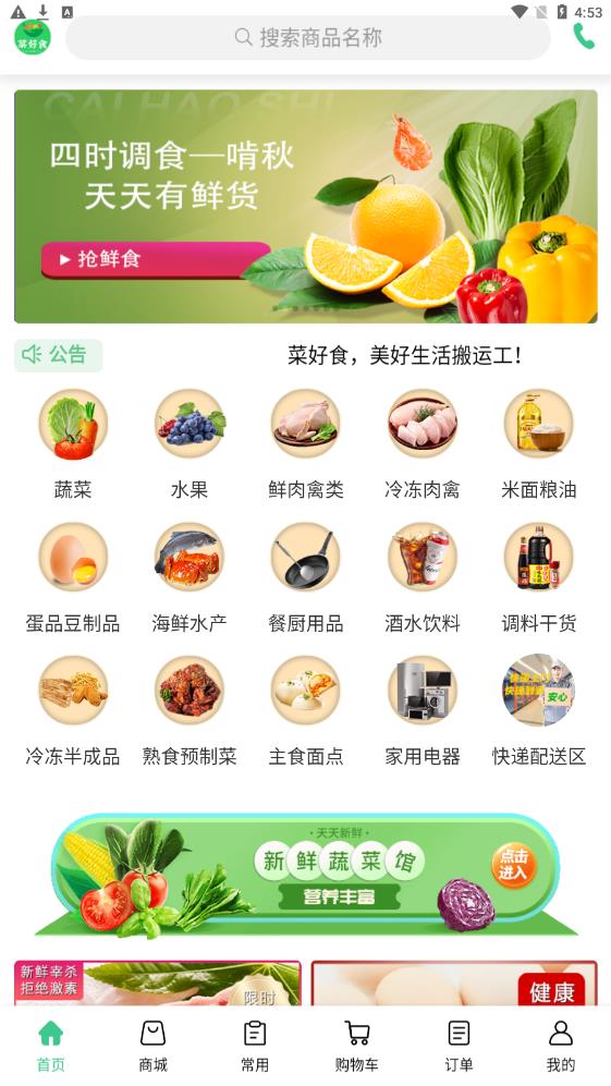 菜好食app带给我们很多的惊喜购物,减去我们去菜市场卖菜的过程,直接在家就可以买到所有需要的食材。