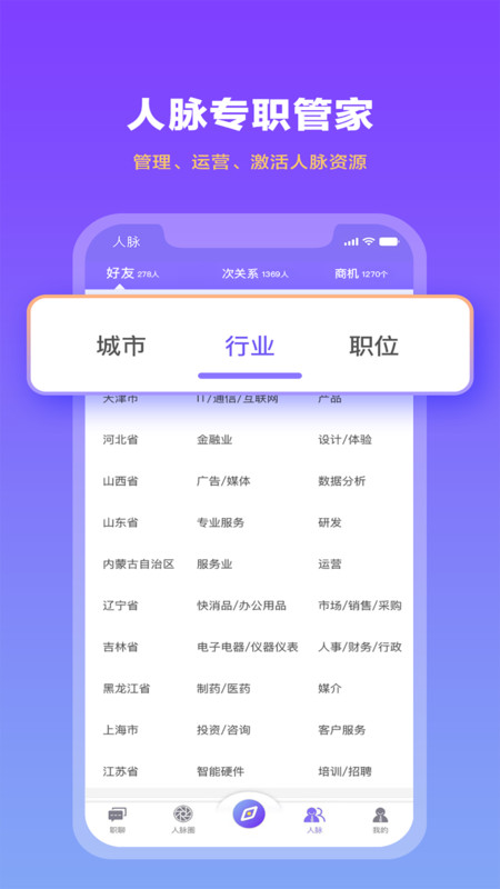 3. 人脉管理:便捷地管理、维护个人社交网络,轻松拓展职场人脉。