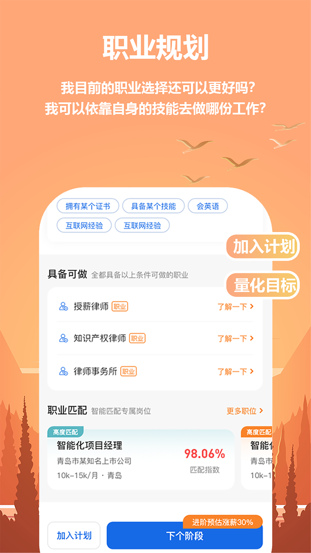 3、让大家可以通过平台更好的进行职业规划,匹配适合的职业。