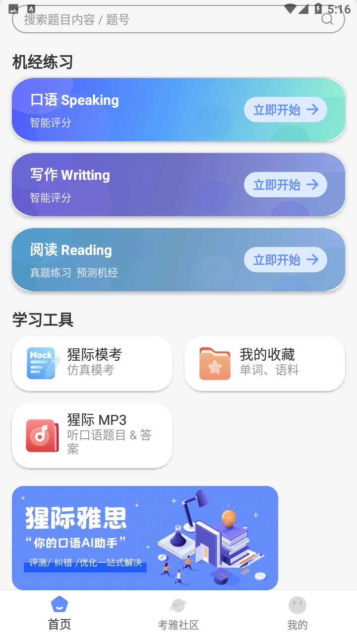 1、猩际雅思APP采用了直观、易懂的界面设计,为用户提供便捷的操作方式,使学习过程更加流畅、高效。