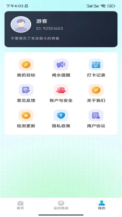 2、设置每日运动目标、每日喝水量等,在线开启打卡模式。
