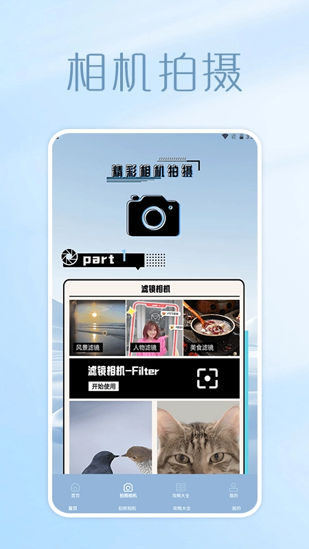 a、拍摄技巧,有专业的板块带给用户更多拍摄技巧,任何时间都可打开学习;