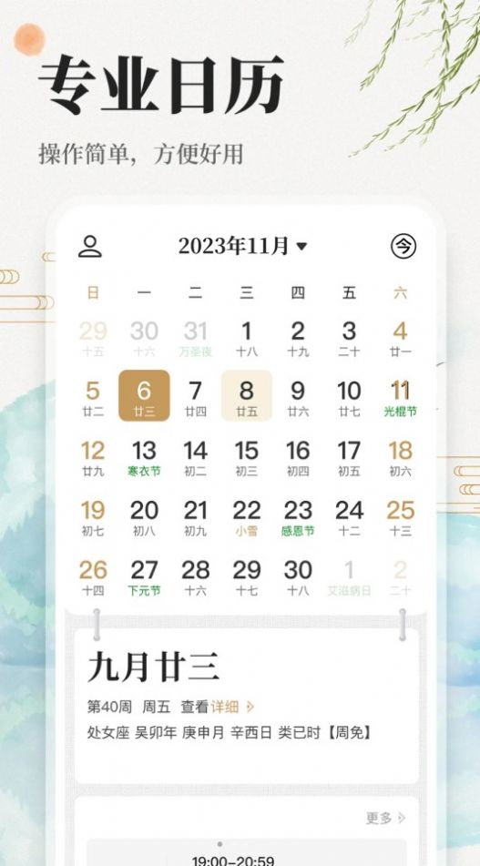 2、轻松获取各种日期信息,能根据吉时建议合理安排生活和工作;