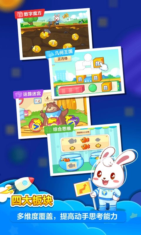 4、认识数字、数字运算、几何与空间、综合与逻辑,多元化锻炼数学思维。