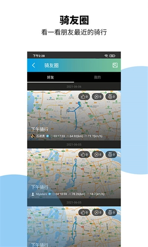 2、提供GPS追踪、路线规划,适合骑行爱好者记录和分享骑行信息;