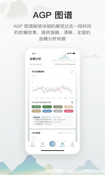 2、还有AGP图谱记录展示控糖效果,让用户们随时知晓自己的控糖情况。