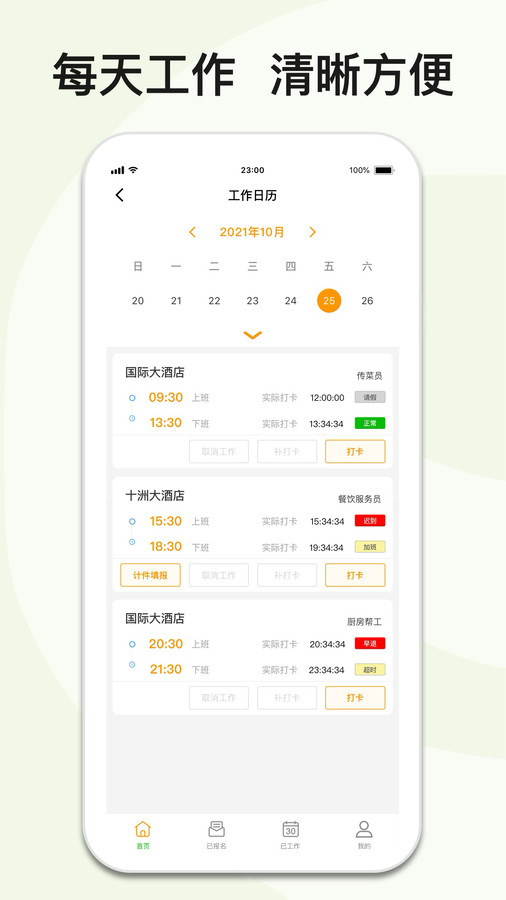 1、每天的工作内容都是非常清晰的,方便大家更好的去查看了解。