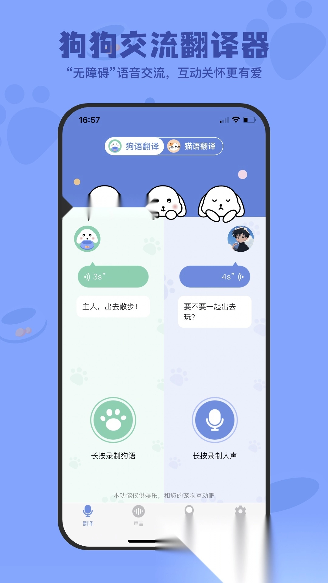 2、集成了宠物翻译功能,不少爱宠人员也很需要,及时了解!