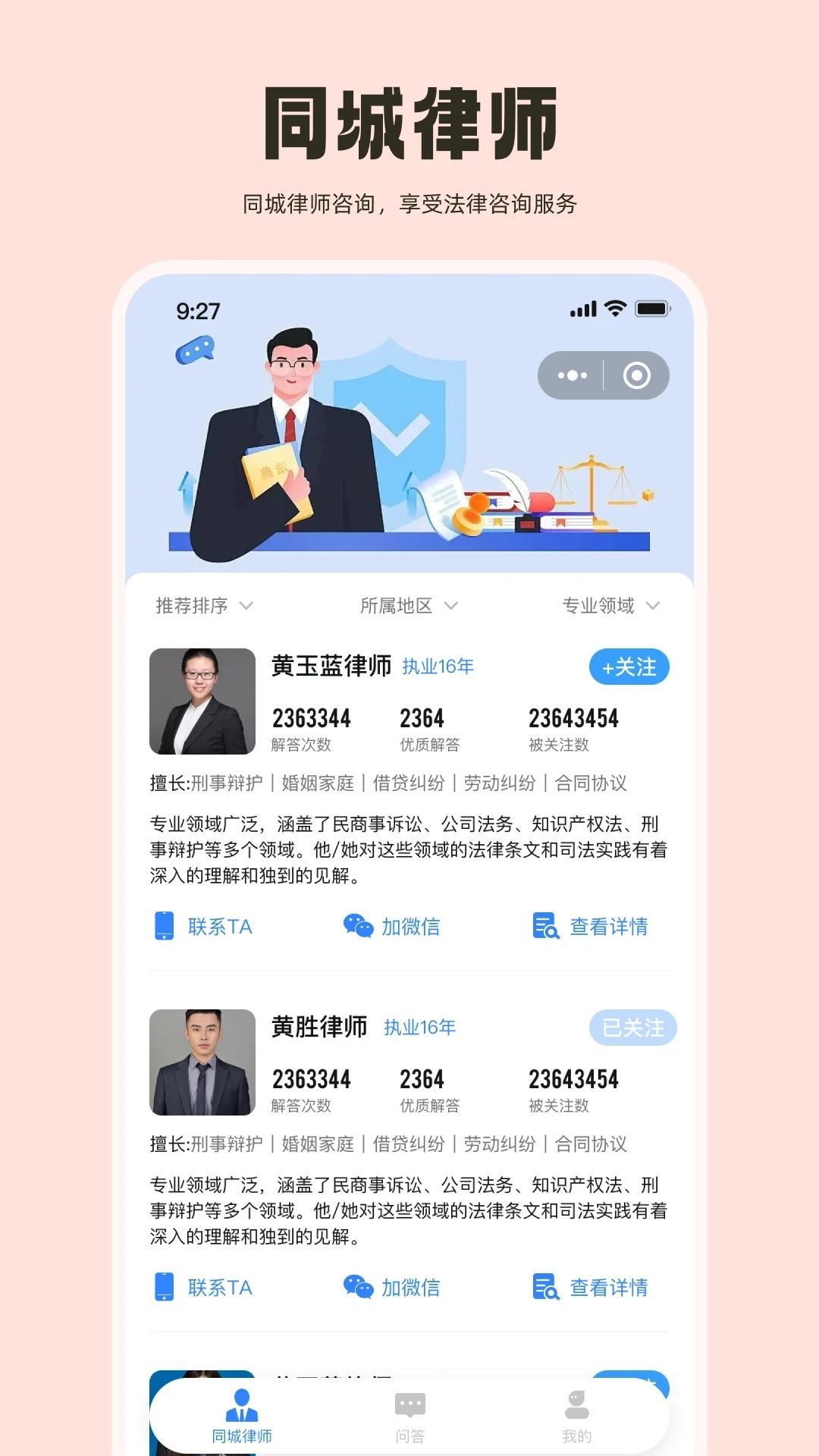3、支持在线寻找同城律师,帮你更加快速的解决问题,全都是平台认证过的专业律师,大家可以放心沟通。
