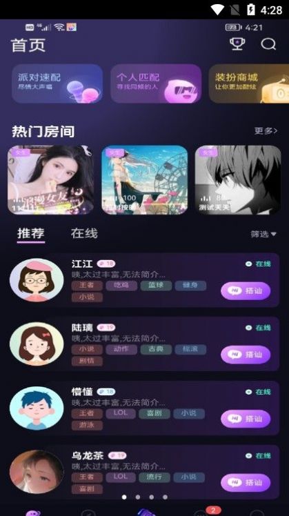 1.大家随时可以进行线上互动交友,有趣的模式应有尽有,可以自由的参与进来;