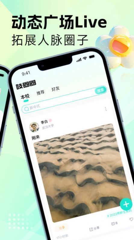 1、可以发布校园活动、约伴等内容,增加了用户互动的多样性;