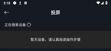 3、在上方设备列表中,选中投屏设备,即可开始投屏系统会自动搜索可投屏设备,请耐心等待。若检测不到设备,可能是设备不支持。