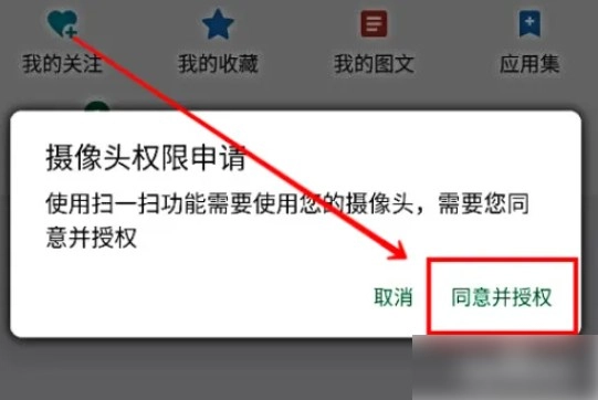 系统将提示您授权酷安App获取摄像头权限,烦请点击允许。