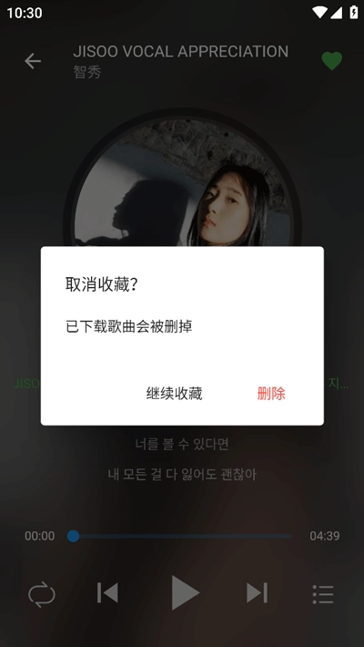 取消收藏,即可删除歌曲。