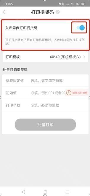 2、开启入库同步打印提货码功能,在连接好打印机后,每当进行入库操作,系统便会自动打印出相应包裹的提货码,此时只需将其张贴到包裹上就行。