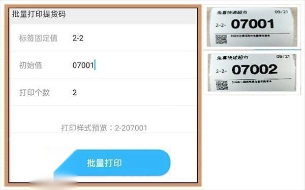 打印个数:若存在100个包裹,就填写100,打印出来的标签会依照序列依次递增,即从050001、050002一直到050100 。