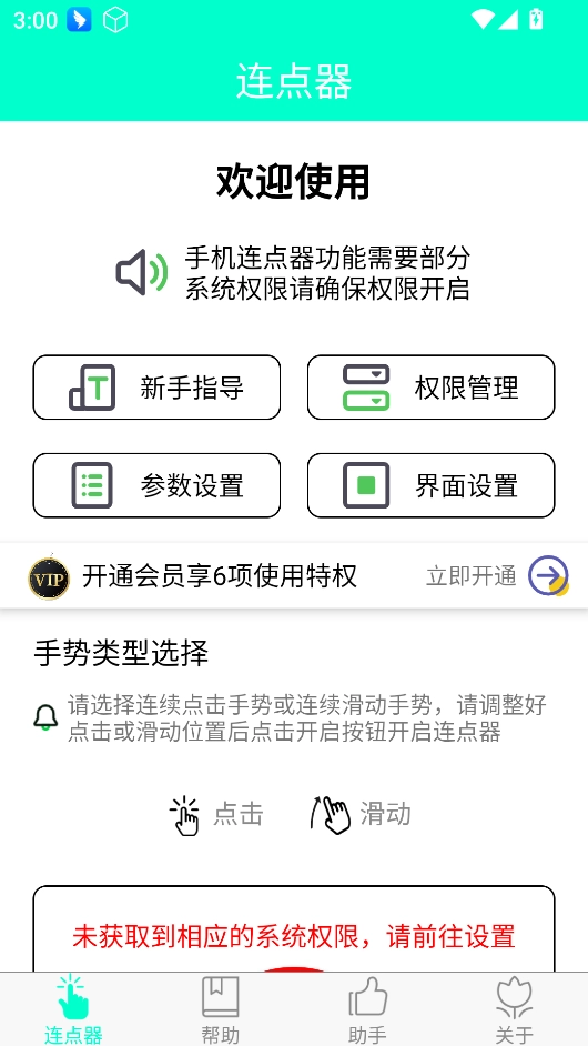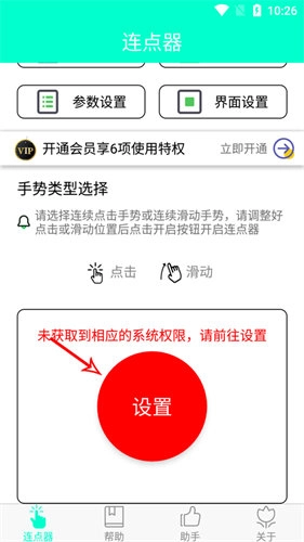 1、打开智能连点器安卓版,在首页点击下方的【设置】选项,进行初始设置。