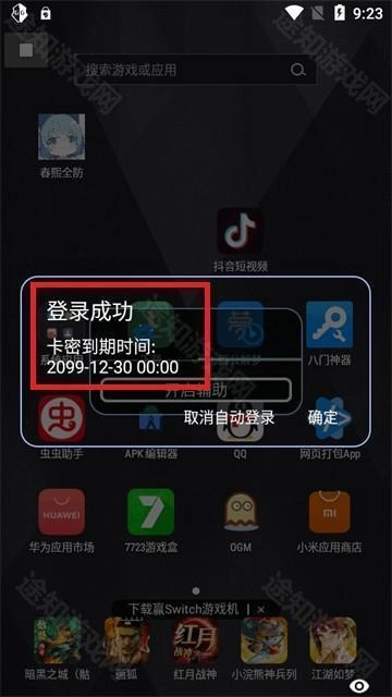 5、此时软件会出现悬浮窗口,点击该悬浮窗口后,需输入卡密。