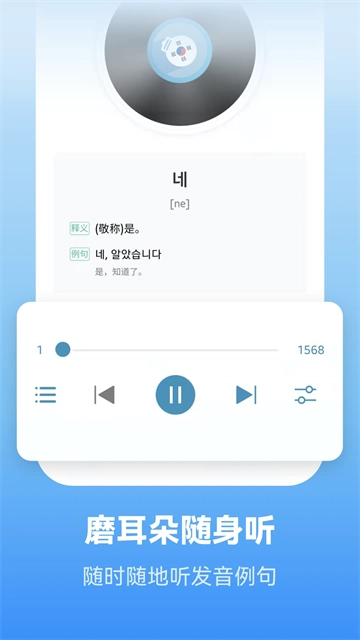 1、有了它,拿出手机就可以学韩语了,时时刻刻能够便捷的学习。