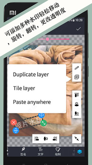 4、可轻松进行移动、旋转、翻转操作,还能更改透明度。