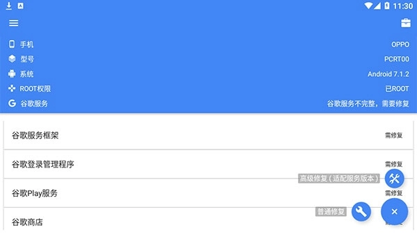 2、两种模式助力你修复谷歌服务,实现谷歌服务版本的精准适配。