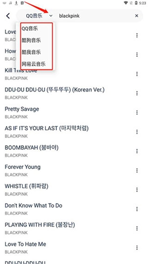 3、在此处能够输入想听的音乐,或是组合、歌手的名字,也能在四大音乐平台上搜索音源。