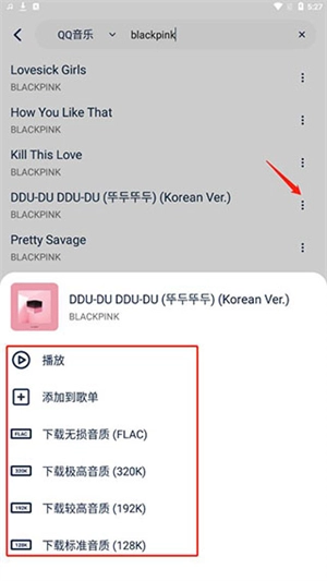 5、点击按钮,即可实现播放、添加到歌单等操作,还有超多音质供你选择。