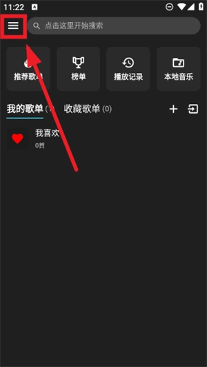 1. 于本站安装刺桐音乐,安装完成后打开该应用,点击界面左上角的三条杠图标。