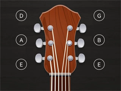 2、拨动琴弦,将琴弦调校至标准音,从6弦到1弦的音名依次应为E、A、D、G、B、E 。