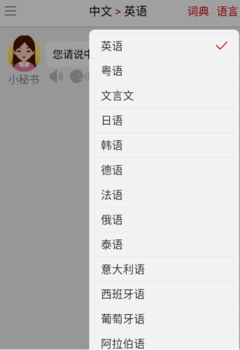 4、轻点右上角的语言选项,便能随心所欲地挑选各类语言,像英文、文言文、日语等等。