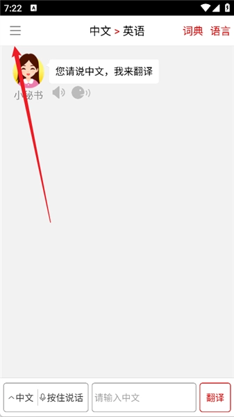 1. 打开同声翻译超级版,点击左上角的三条横线。