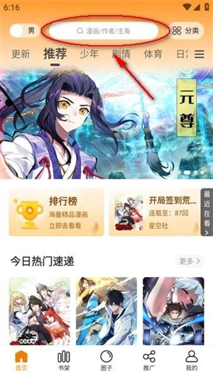 1. 开启漫天玉漫画,随后点击顶部的搜索框,具体位置如图所示: