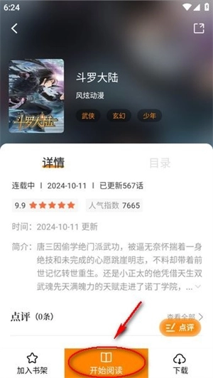 4、挑选想要阅读的漫画,点击底部中间位置的“开始阅读”按钮就行。