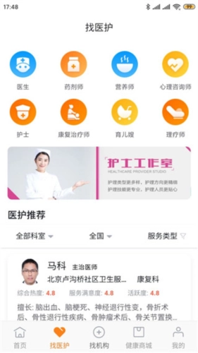 3、点击“找医护”,即可在线找寻各类服务人员。