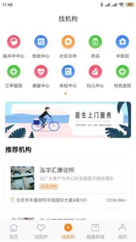 4. 点击“找机构”,即可查找各类医疗康复机构。