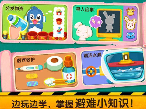 3、在此学习各类灾难的相关小知识,教导小朋友们怎样才能避开这些灾难,实现成功自救。